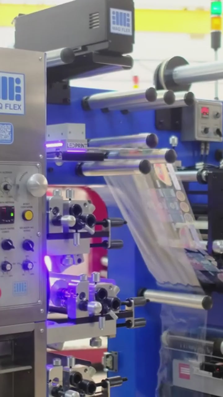 A Revoo TC é a impressora flexográfica de banda média da MaqFlex, equipada com 7 grupos impressores, unidades independentes para verniz e/ou adesivos e velocidade de até 250 metros por minuto.