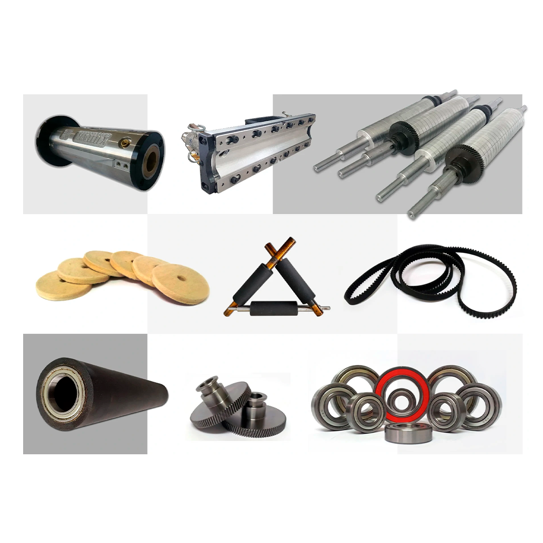Lâminas doctor blade, feltros, correias, guias, mangotes, facas e contra-facas, tubetes/mandris.