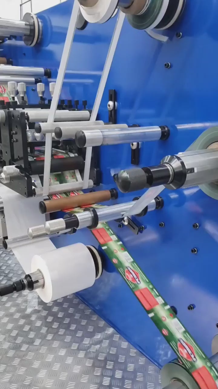 Conjunto móvel (desbobinador + rebobinador) que você desloca para qualquer cor. Agrega metalização a frio, efeitos holográficos e verniz UV com flexibilidade.
