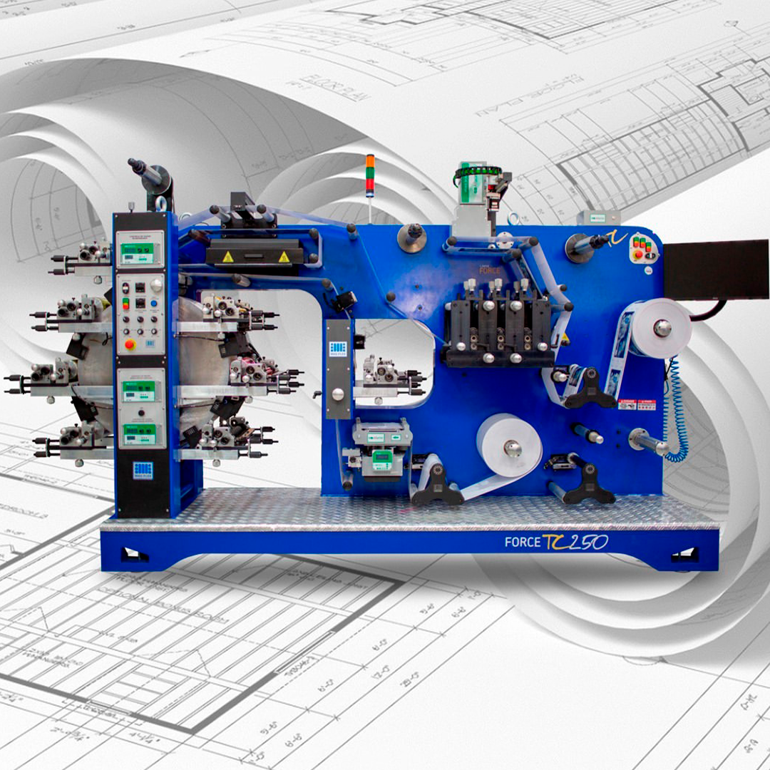 A FORCE TC é a Impressora Flexográfica (Tambor Central) mais potente e versátil da MAQFLEX. Feita para rótulos e etiquetas, ela aceita uma ampla gama de substratos desde papéis couché/termal até BOPP, PE, PP, PET e laminados.