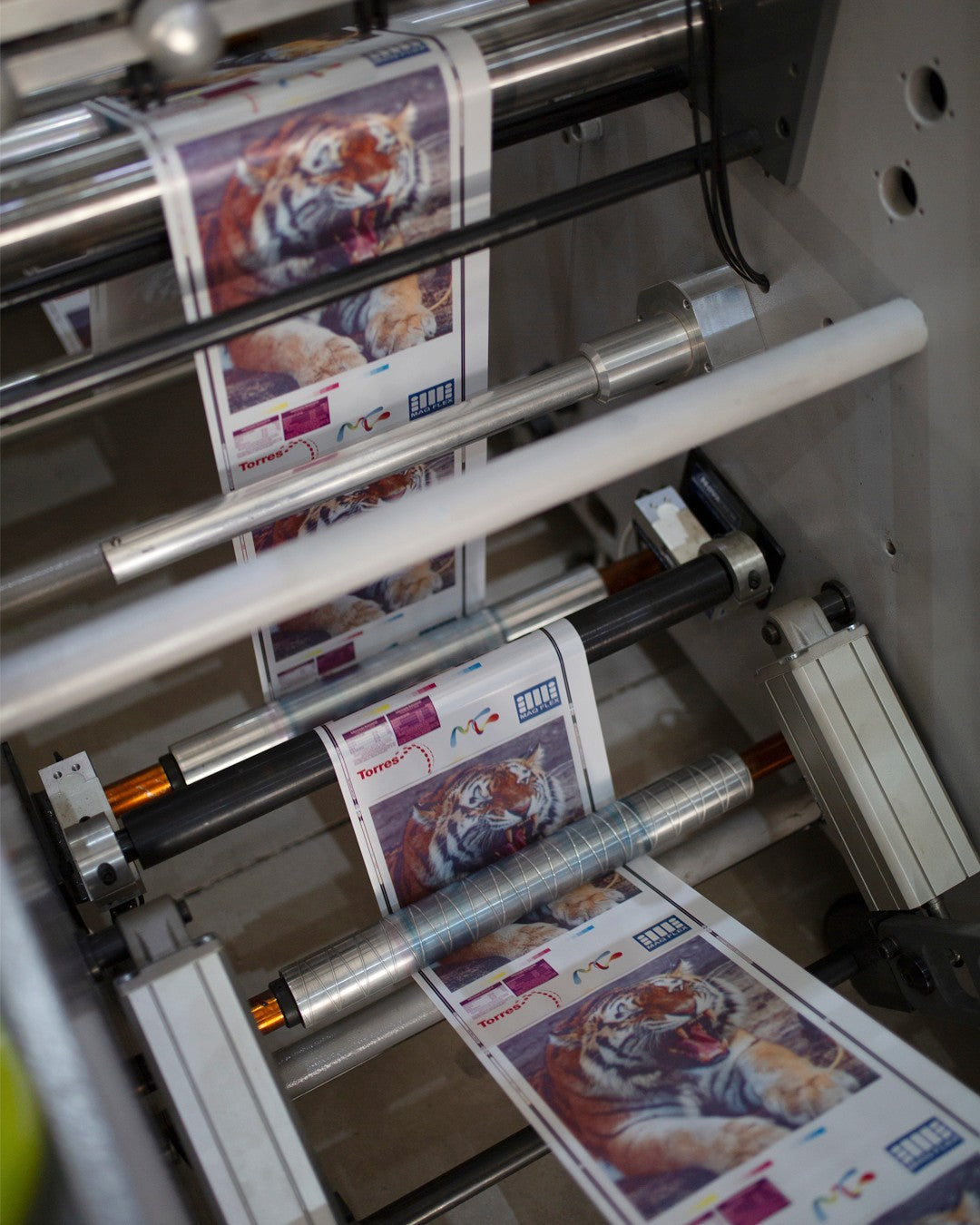 A FÚRIA imprime papéis (couché/térmico, offset, vergê), filmes autoadesivos (BOPP, PE, PP, PET) e laminados, mantendo registro estável e cor consistente. Também atende shrink sleeves (PETG/PVC/OPS, impressão reversa), com controle de tensão e perfil de secagem adequado (UV ou UV LED, conforme configuração).
