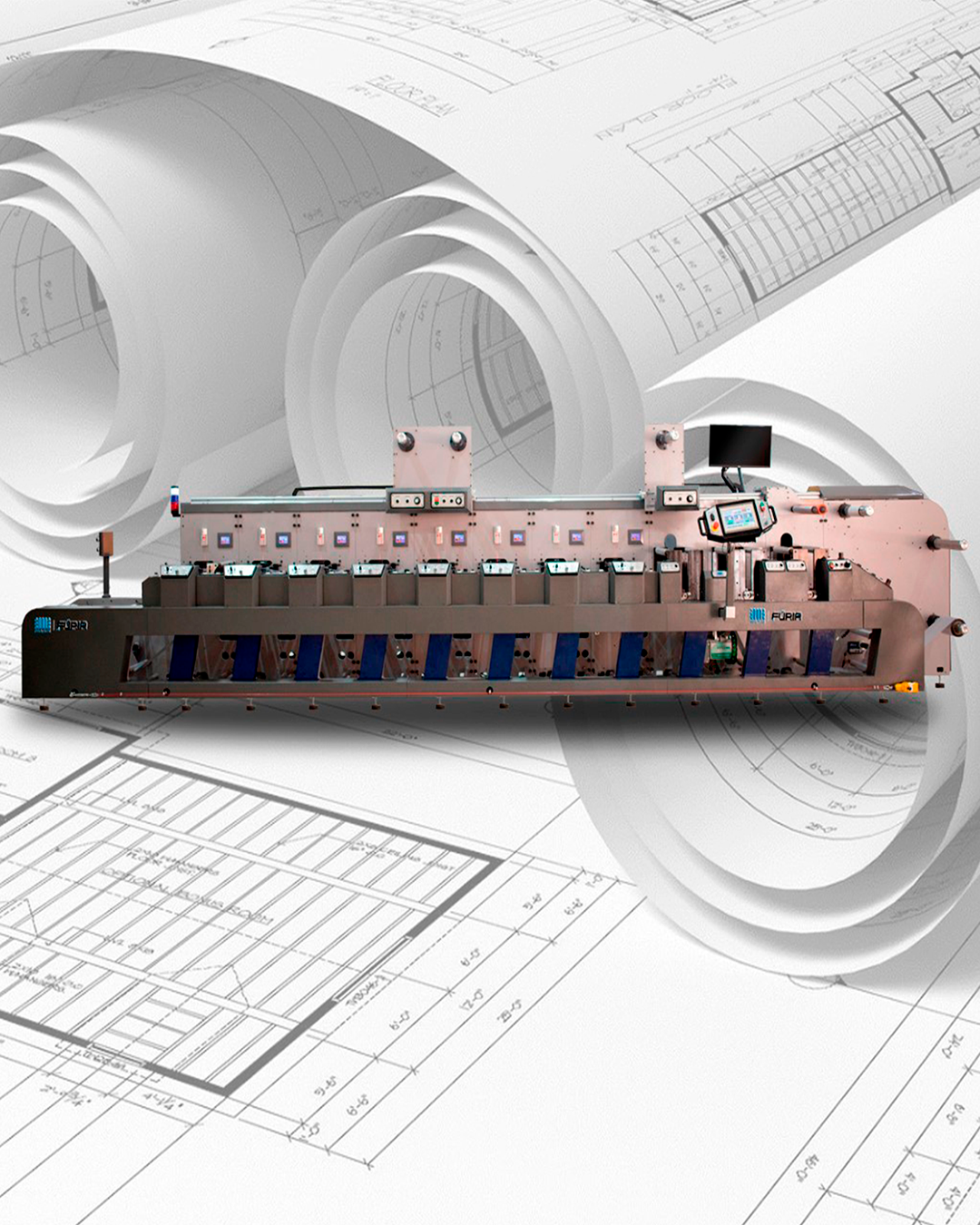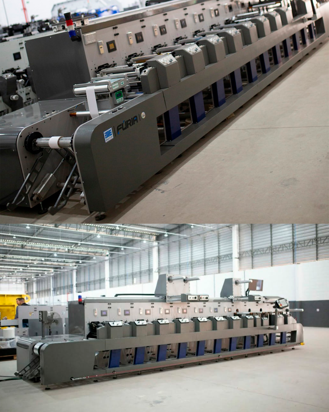 Criada para escalar em cores, largura e processos, está disponível com 6 a 8 grupos impressores e larguras de 250, 350, 450 e 700mm. Equipada com a tecnologia FAST PRINT® (porta-clichê com roldanas), A FÚRIA encurta o setup, facilita trocas e limpeza e sustenta registro estável com baixa vibração (conforme configuração).