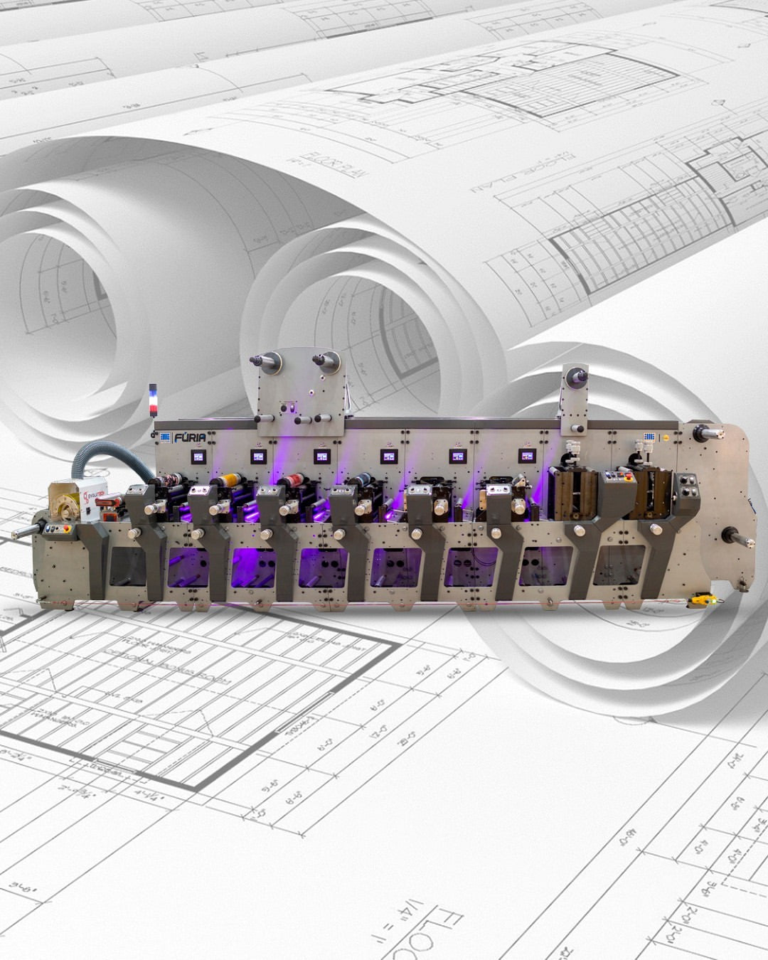 A FÚRIA permite incluir módulos conforme a aplicação e substrato: delam/relam, impressão no verso, laminação UV, cold foil / Cast&Cure, corte longitudinal, inspeção por câmera 100%, mesa de emenda, corona/antiestático e câmara fechada no doctor blade, tudo conforme configuração.