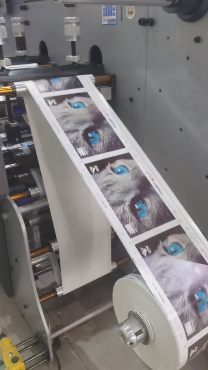Deslamina o autoadesivo, imprime na camada adesiva e relamina. Atende segurança e antifalsificação, QR “invisível” e instruções vistas através do face.